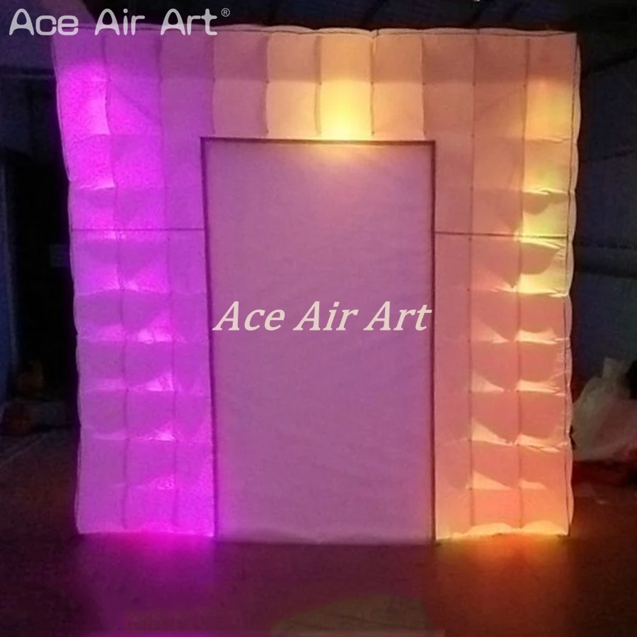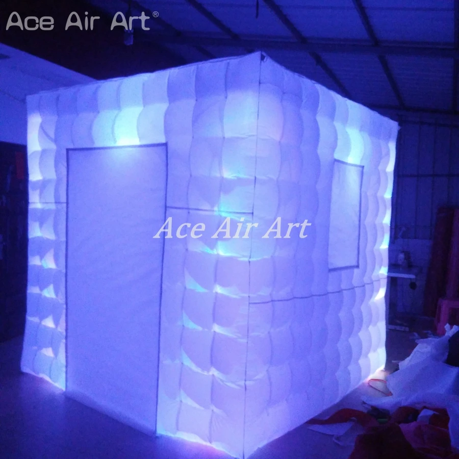 Free shipping 2.5 m white led inflatable photo boothselfie Dj kiosks with spotlights and sticker co