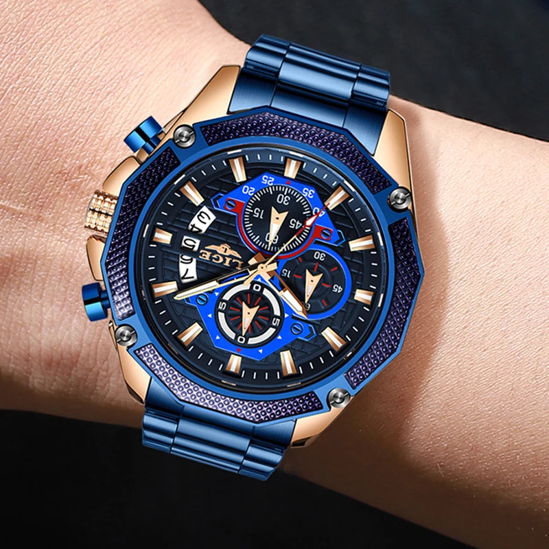 2019 LIGE INew Fashion Mens Watches with Stainless Steel Top Brand Luxury Sports Chronograph Quartz