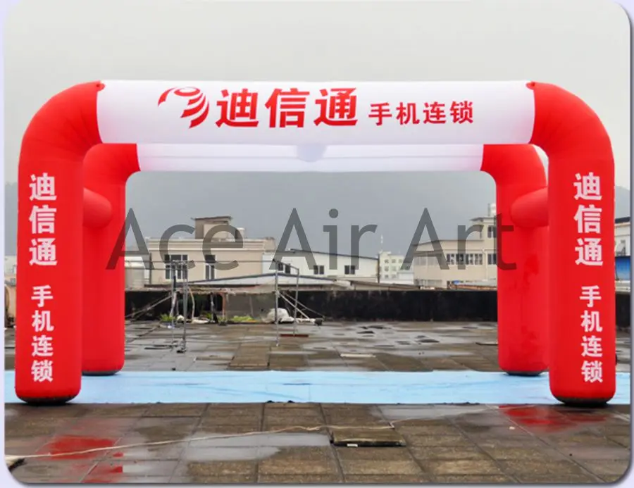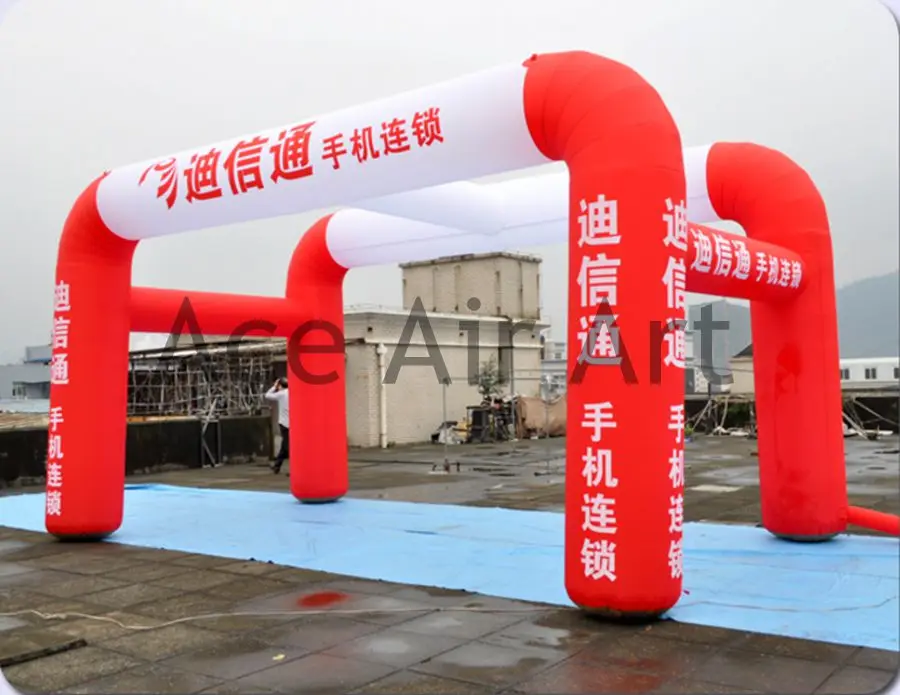 ORIGINAL 210 d Oxford red and white inflatable double arch tent for event with logo made in China