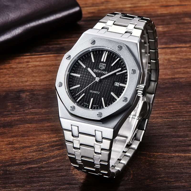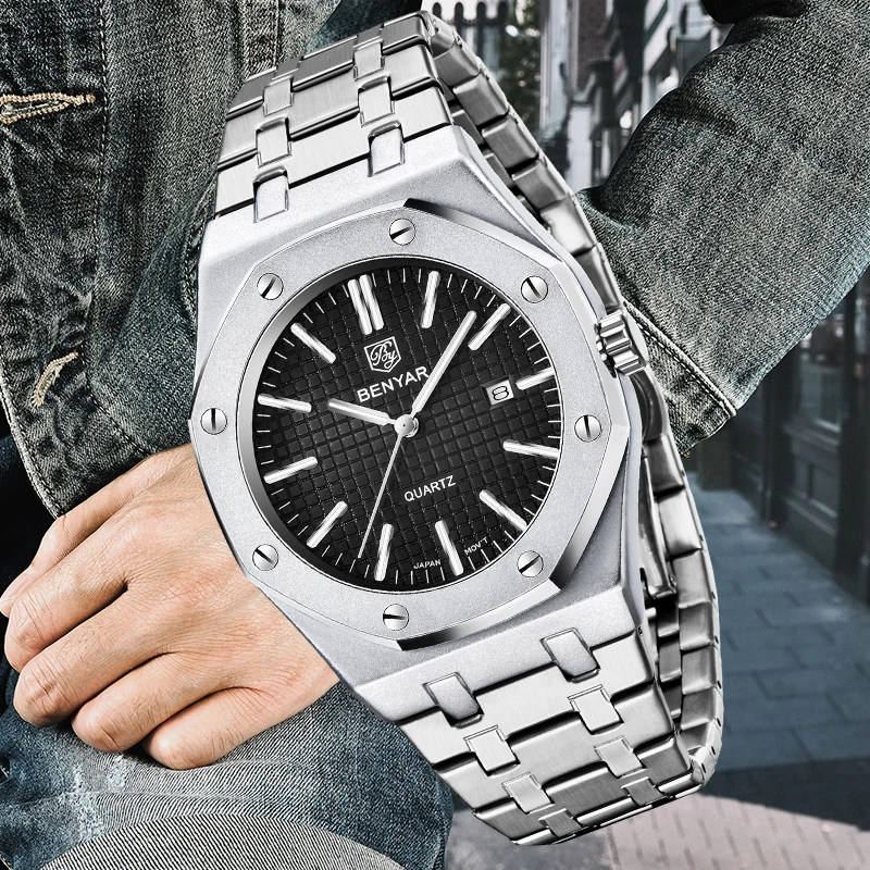 BENYAR Watch Men's Business Sports Casual Quartz Movement Top Brand Luxury 30M Waterproof All Steel