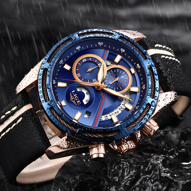 HOT SALE LIGE Mens Watches Top Brand Luxury Sports Quartz Clock Creative Watch Men Waterproof Fashion Blue C