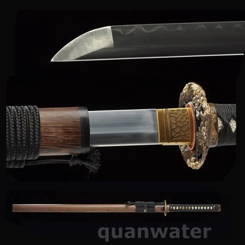HOT Sale Top Real Clay Tempered Blade Japanese Rosewood Samurai Katana Copper Lion Tusba